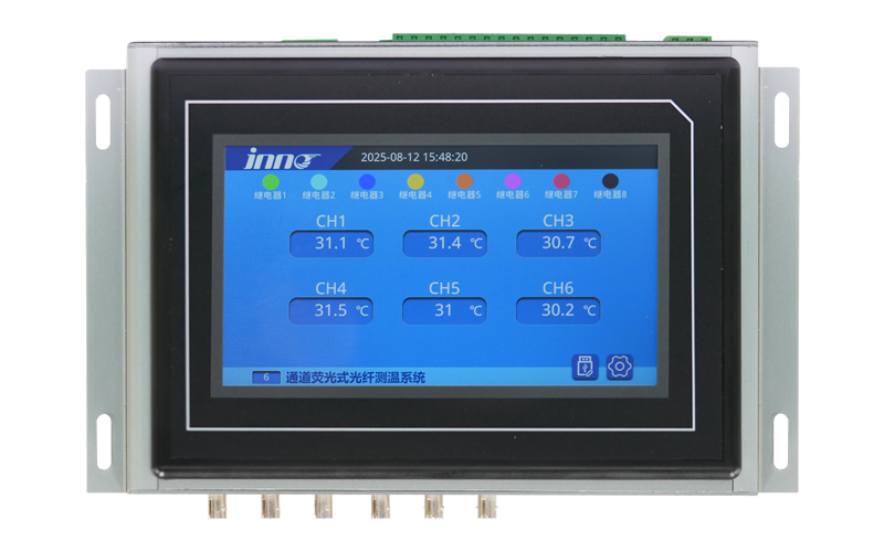 顯示一體化光纖測溫主機,熒光光纖測溫顯示一體裝置,開關柜測溫系統,英諾科技。顯示一體···